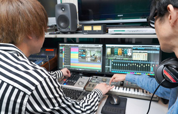 全ブースに導入当校では、全ブースにPCとプロも愛用する録音設備が導入され、録音編集が可能です。